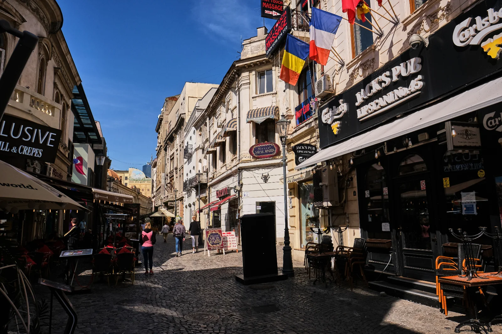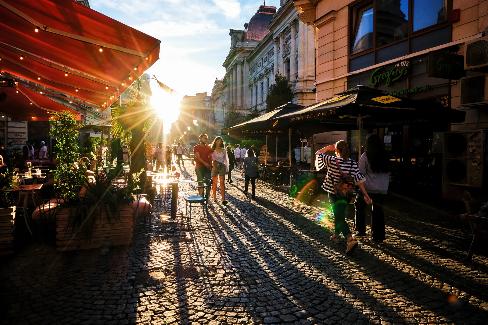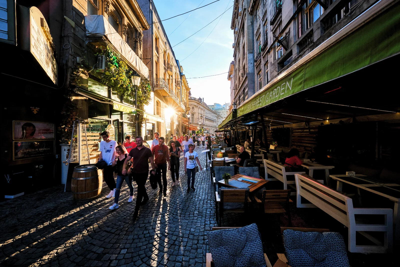 As the evening sets in, especially during the warm season, Bucharest Old Town transforms into a completely different place and the atmosphere changes dramatically. The pace becomes almost hypnotic, with rivers of people overflowing into the most vibrant streets, frantically searching for the popular restaurants, pubs, and nightclubs!